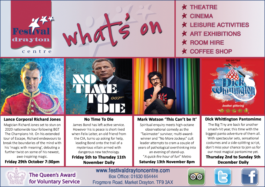 Festival Drayton Centre, what’s on — For our full listing of events, in order of date, see attached or feel free to view our website for more details and booking info.