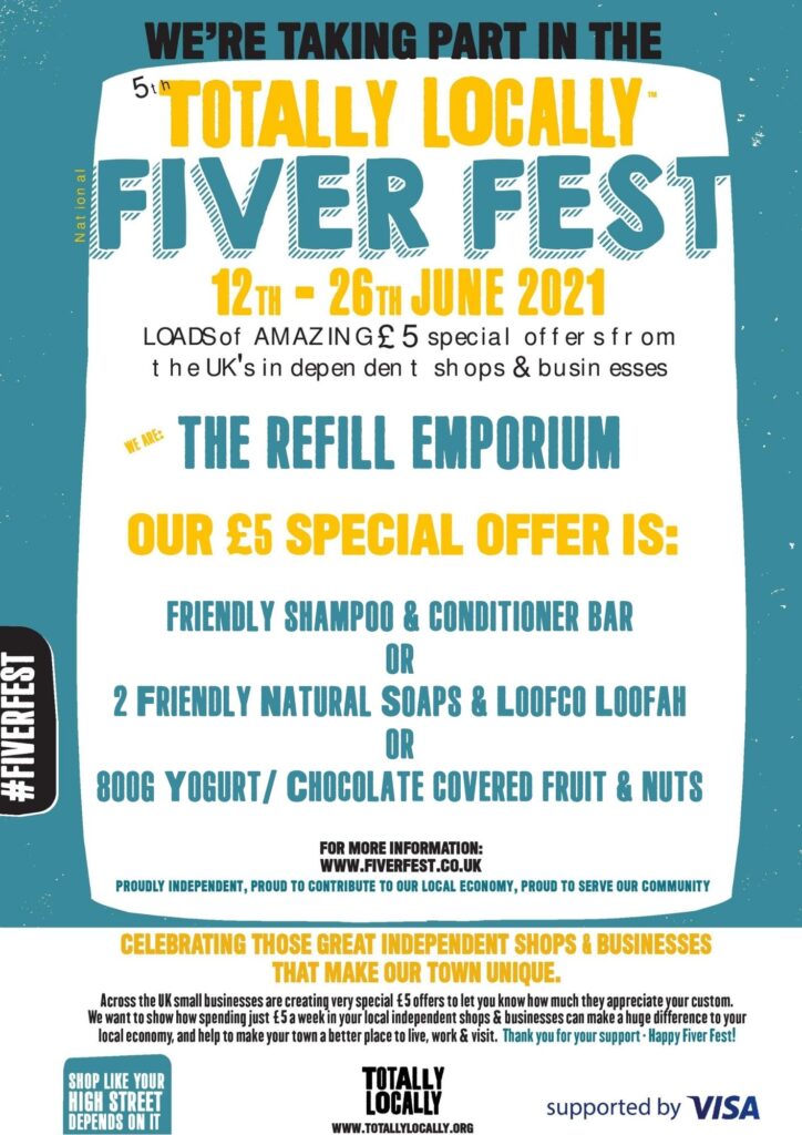 News, Traders, The Refill Emporium – #FiverFest Offer07/06/2021 / By Dan Make an environmentally friendly change with The Refill Emporium. Facebook Instagram Tags:fiver festoffersshop localshopping000